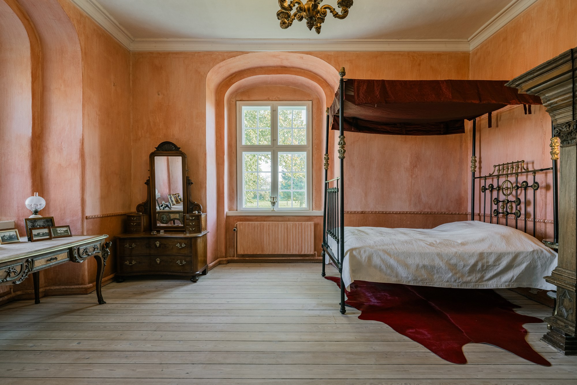 Værd at bemærket er også rummets 2,5 meter høje brændeovn, der tidligere fungerede som en vigtig varmekilde og stadig står som et smukt symbol på fortiden.