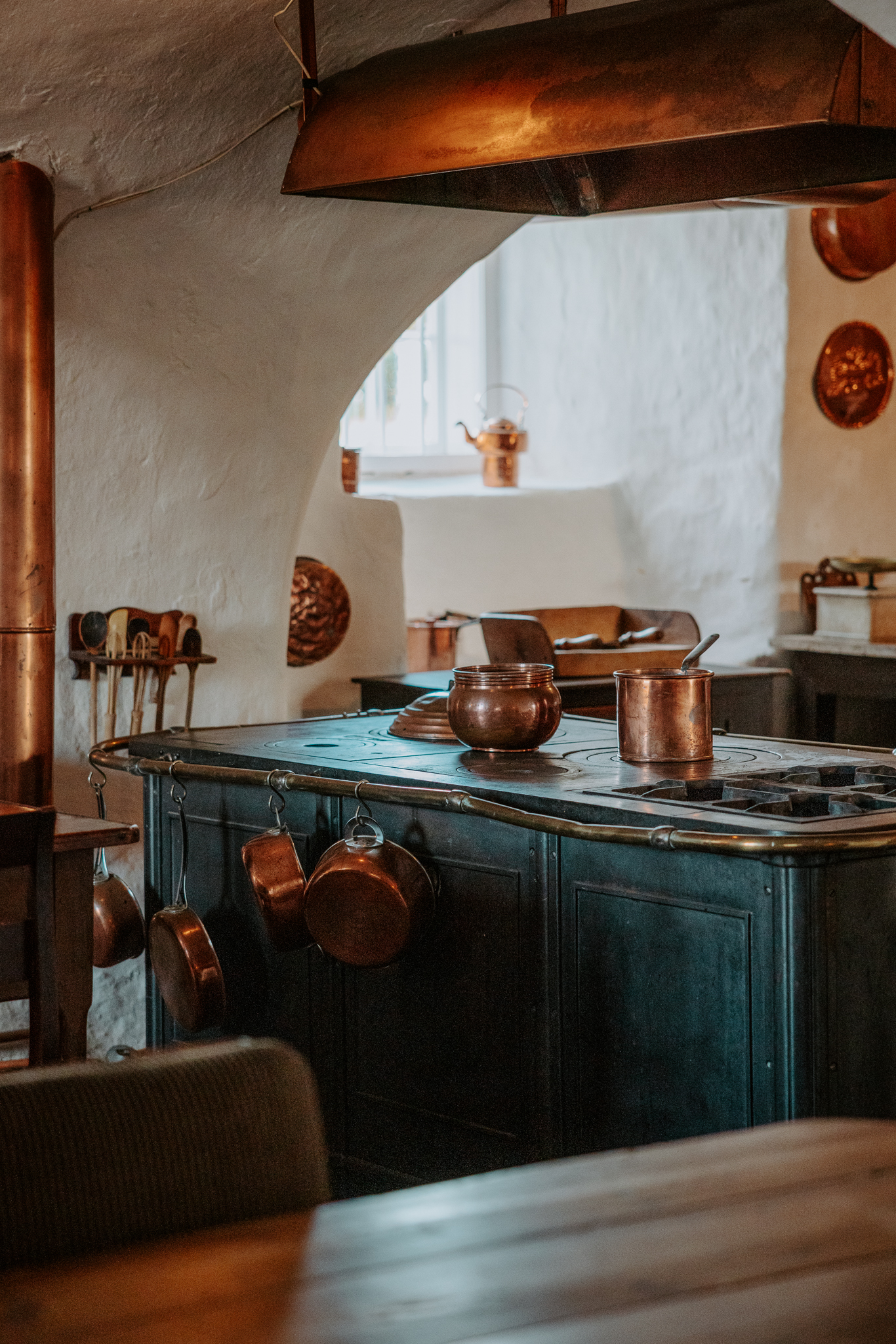 Det autentiske storkøkken i stueetagen oser af stemning og historie med sine smukke hvælvinger og stengulv og har siden 1606 været køkken og borgerstue. Fra køkkenet er der også direkte adgang ned til ”fangekælderen”.